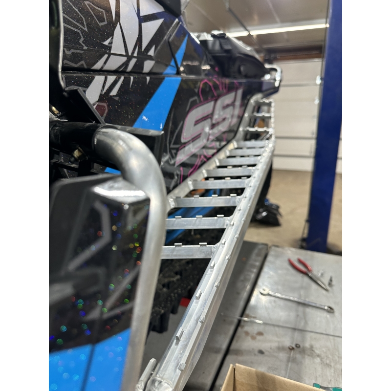 - Bolt on front stirrup allows for easy removal of foot guards for belt changes, maintenance, etc.