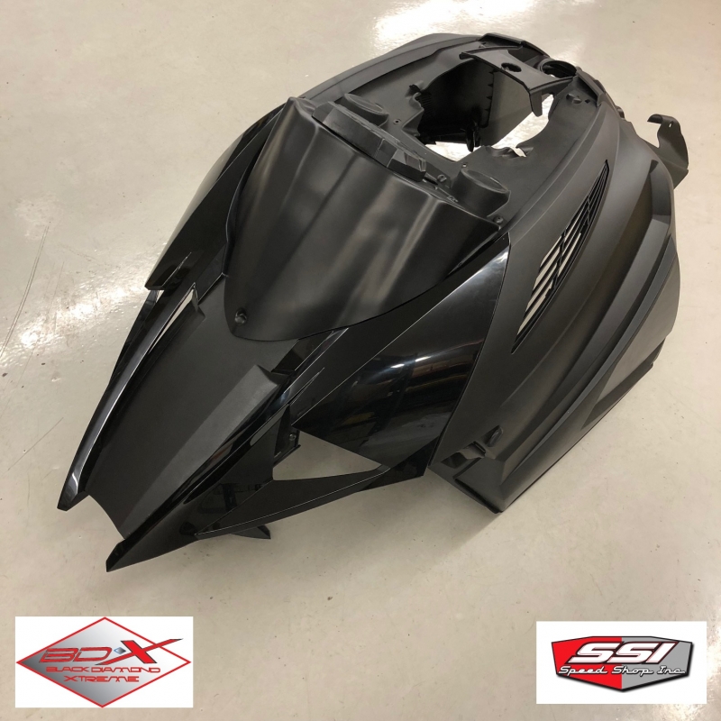 This kit comes with all new BLACK front end plastics off of the 2018+ Style Arctic Cat Ascender chassis. Hood panels, side panels, belly-pans, hood vents, cowl, hardware and fasteners.