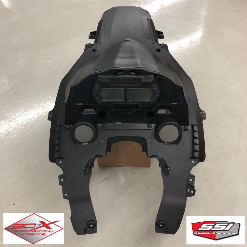The kit comes with the new main center black hood cowl, with a new short windshield and dashplate. Frogskins are already installed for the kit.