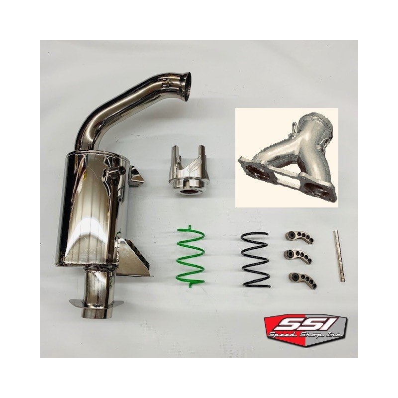 Our Ski Doo 850 Budget Performer Kit is a great way to pick up serious performance gains for not a lot of money. The SPI y pipe adds 5 more horsepower. Then drop 10-13 pounds of weight with either our Stainless Steel or TITANIUM mufflers. The mufflers have nice deep tone to them without being too loud. Trail friendly. The clutch kit puts the power to the ground.