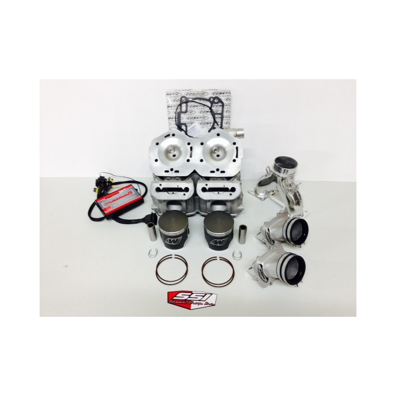 THE ETEC 860 BIG BORE IS A TORQUE MONSTER ON SNOW! WE BORE OUT THE CYLINDERS, DO A FULL PORT JOB, RENIKASIL PLATE THEM AND MODIFY THE EXHAUST VALVES. THE STOCK HEAD IS CNC MACHINED FOR THE LARGER BORE. YOU GET TWO NEW PISTON KITS AND A FULL TOP END GASKET SET. THIS KIT WORKS BEST WITH Vforce REEDS AND OUR SSI PERFORMANCE Y PIPE. IT CRANKS OUT 180 HORSEPOWER AND OVER 120 LB/FT OF TORQUE! A POWER COMMANDER IS REQUIRED FOR THE FUEL CURVE, WHICH WORKS GREAT. THIS KIT WAS DESIGNED TO BE SUPER RELIABLE, AND IS A VERY STRONG RUNNER!