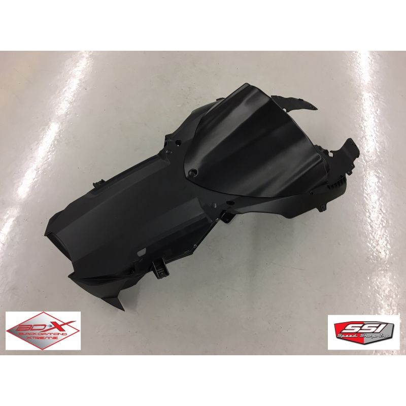 The kit comes with the new main center black hood cowl, with a new short windshield and dashplate. Frogskins are already installed for the kit.