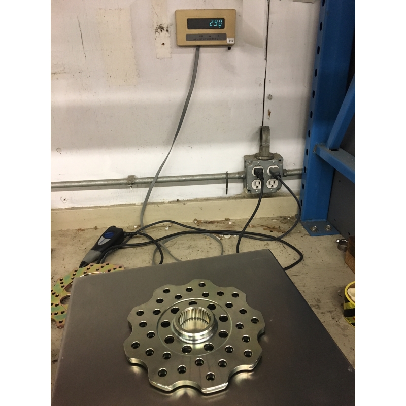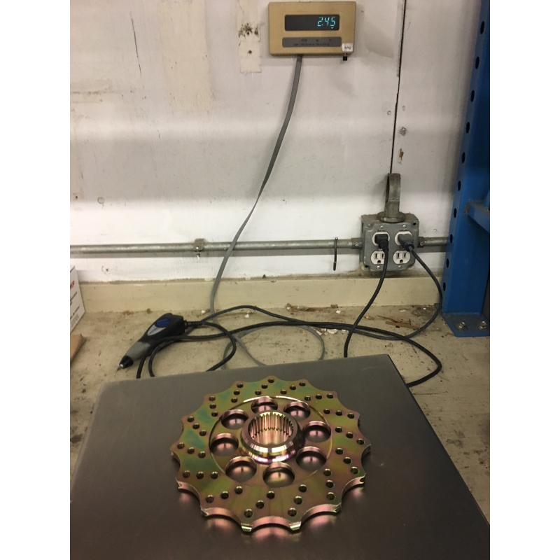 The pictures on the scale are of the new SuperLite Brake Rotor, and our original ProLite version, and then the Arctic Cat vented SnoPro style stock rotor. Sorry, no pictures of the stock solid heavy brake rotor.