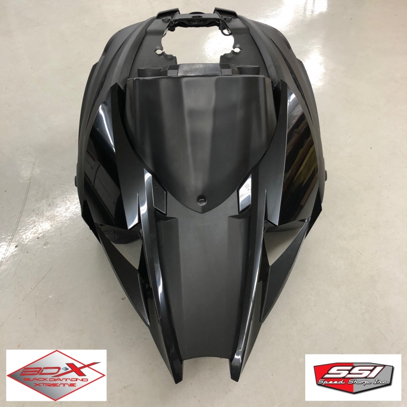 This new PROMAX kit come with new side panels, bellypans, hood vents, upper cowl PRO-MAX cold air intake, low windshield pod with built in digital gauge mount dash and intake. Comes with all frogskin intakes installed on the dash and hood. A complete kit to update your machine like our new PROLITE'S. Less weight than the newest Arctic Cats by about 7 lbs!!